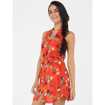CHEMISIER CANTÃO DUAS CORES ESTAMPA STELLA LARANJA - G