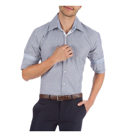 Camisa Social Masculina Azul Listrada - 05