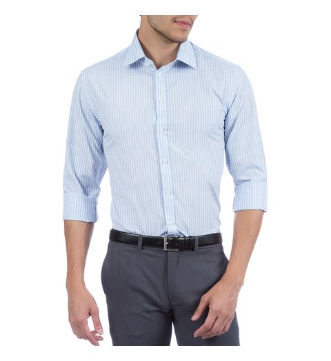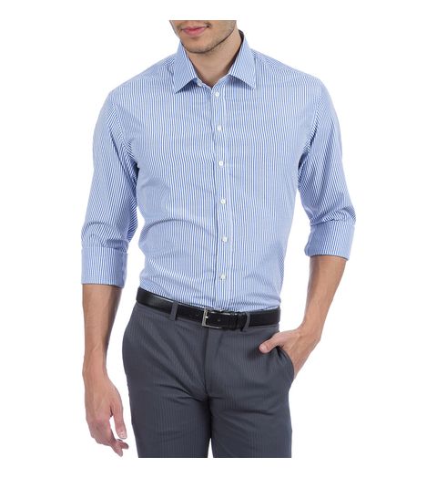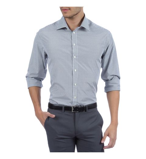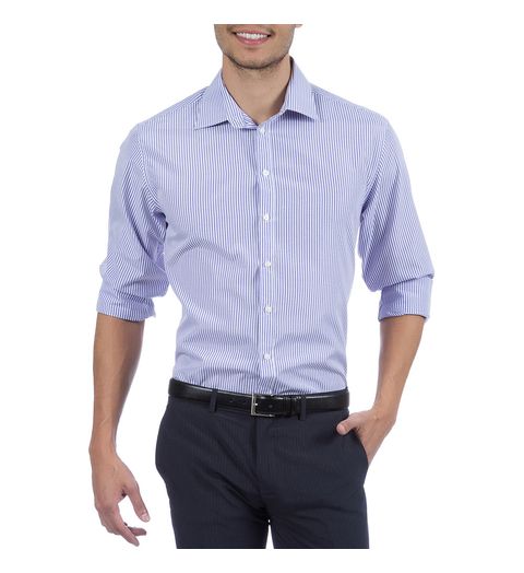 Camisa Social Masculina Azul Listrada - 03