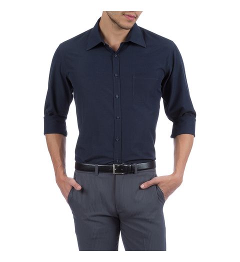 Camisa Social Masculina Azul Marinho Lisa - 03