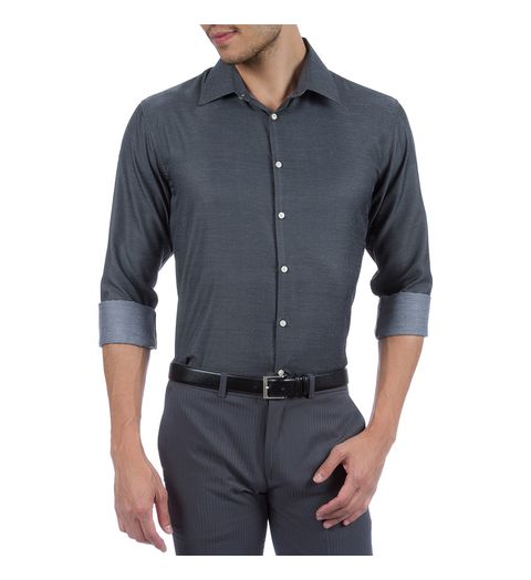 Camisa Social Masculina Cinza Chumbo Lisa - 05