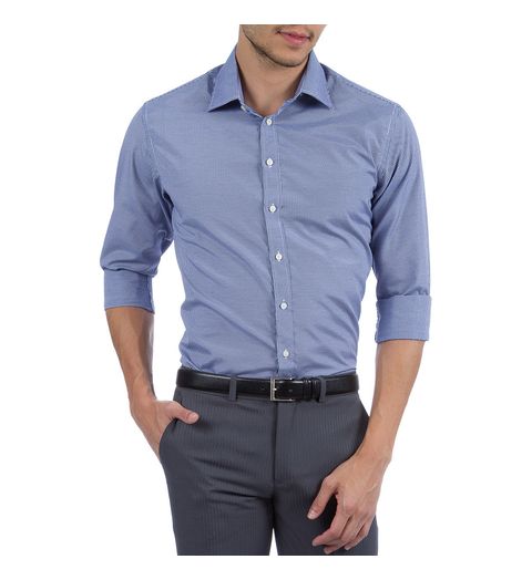 Camisa Social Masculina Azul Listrada - 05