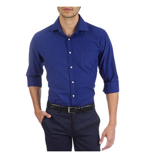Camisa Social Masculina Azul Lisa - 5