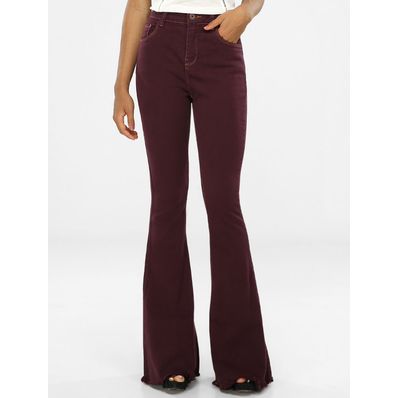 Calça Cantão Sarja Flare Boca De Sino Berinjela - 40
