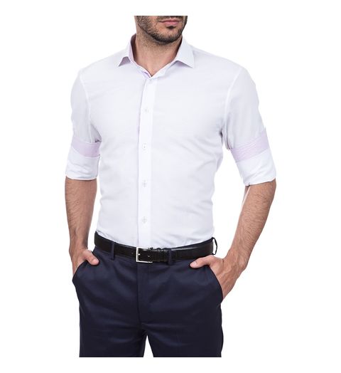 Camisa Social Masculina Branca Lisa com Detalhe - 3