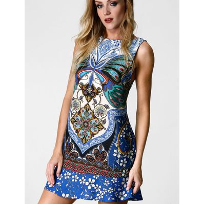 Vestido Farm Curto Borboletário Azul e Off White - P