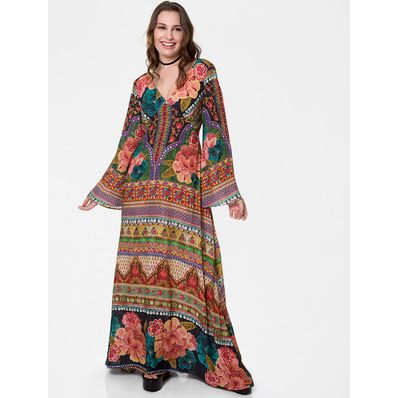 Vestido Farm Longo Floral Anita Preto - P