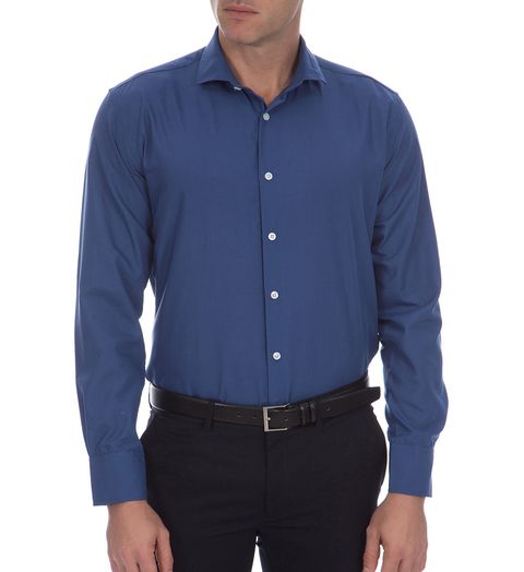 Camisa Social Masculina Azul Lisa com Detalhe - 02