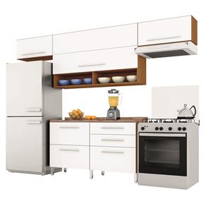 Cozinha Compacta Bartira Glamour com 3 Portas e 5 Gavetas - Branca/Imbuia