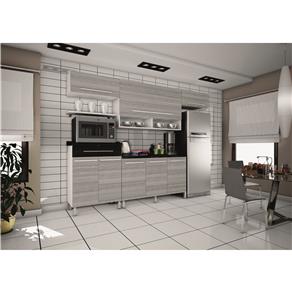 Cozinha Bartira Glamour com 8 Portas e 1 Gaveta - Branca/Preta/Cinza