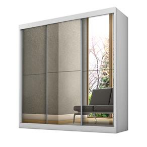 Guarda Roupa Casal com Espelho 3 Portas de Correr Luna Rufato Branco