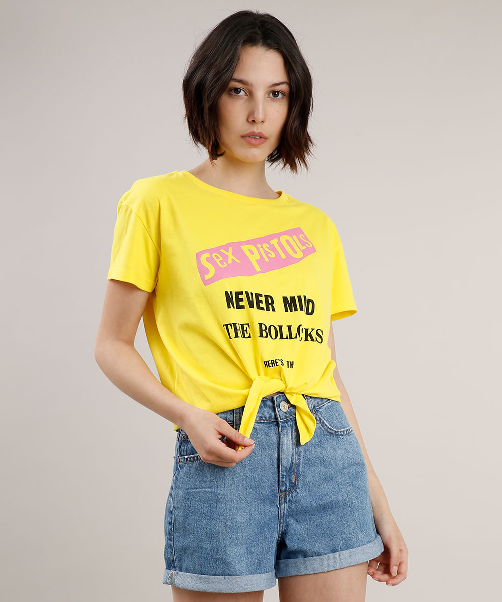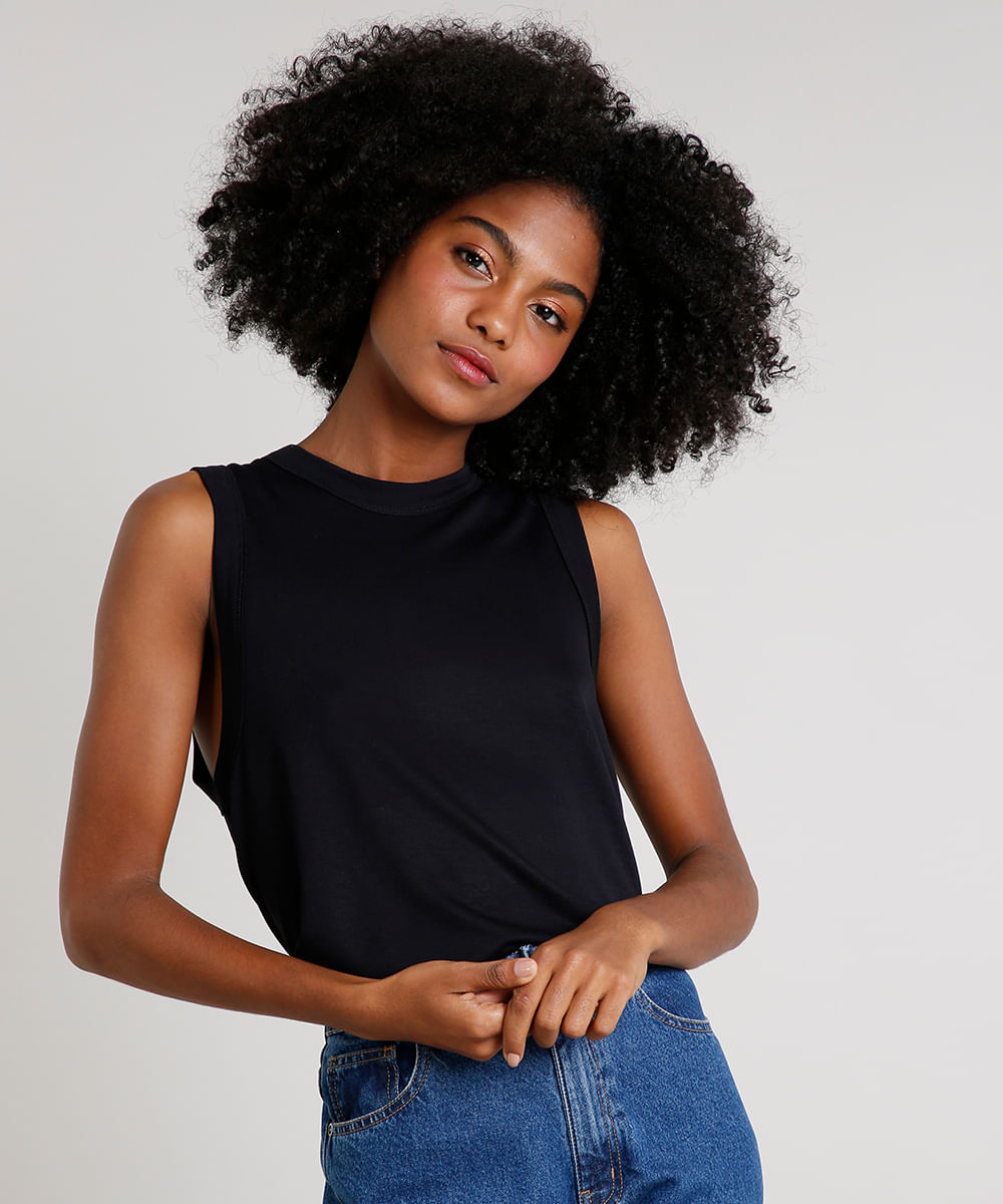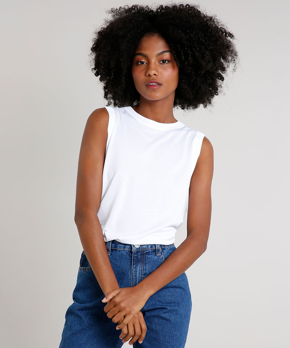 Regata Feminina Mindset Decote Redondo Off White | Blusa Feminina Mindset com Botões Manga Curta Decote V Profundo